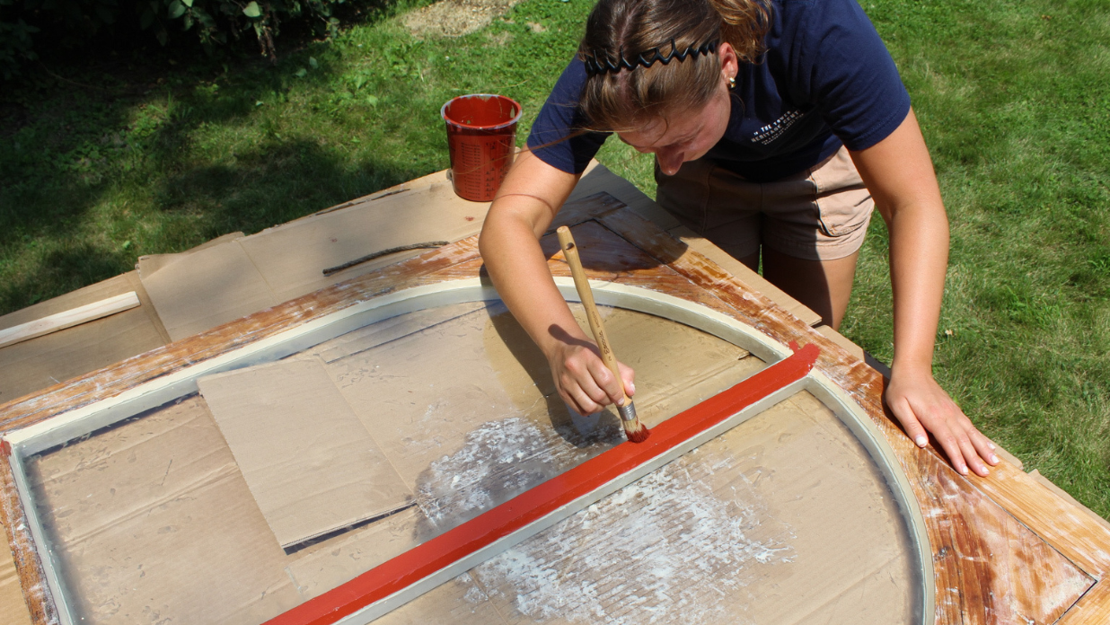 Window glass is re-installed and glazed to create a weatherproof seal. Next, the sashes get a fresh coat of linseed oil paint, one more barrier to protect them from the elements.