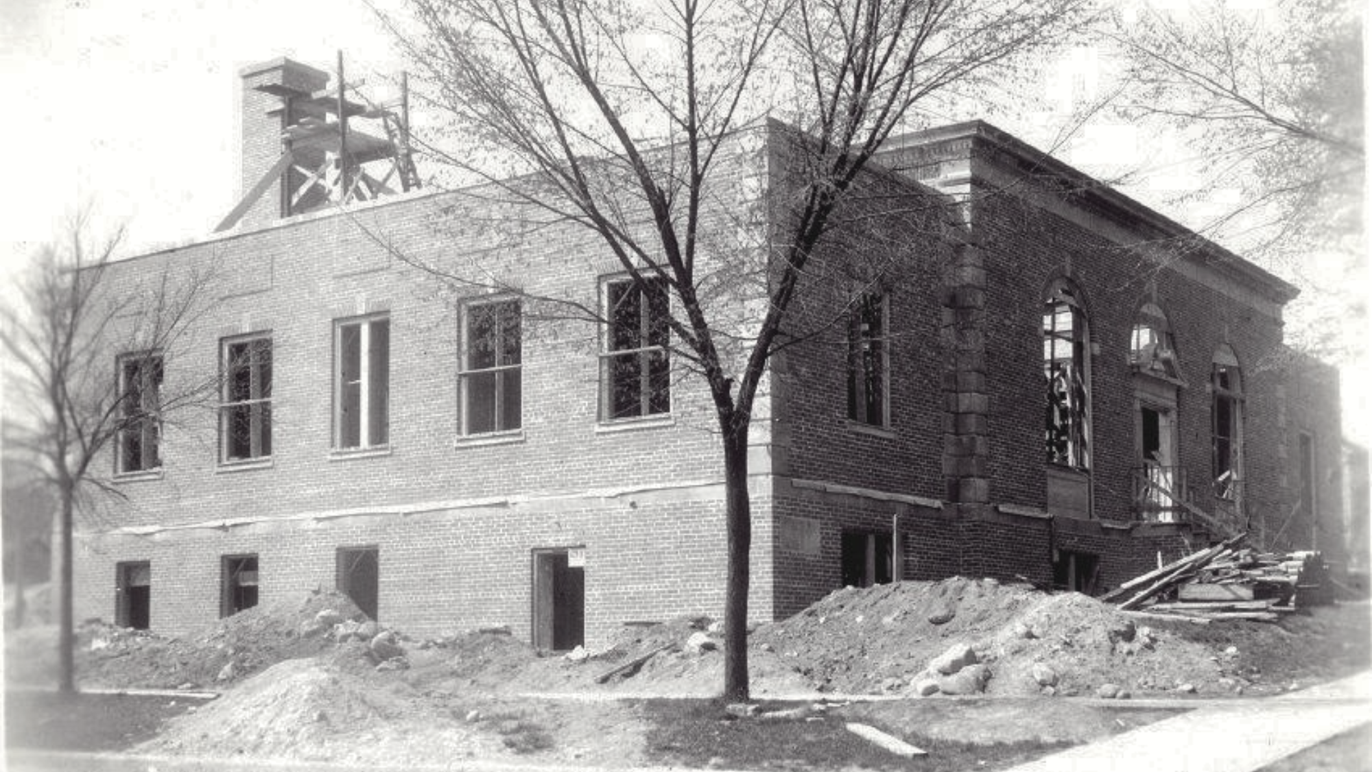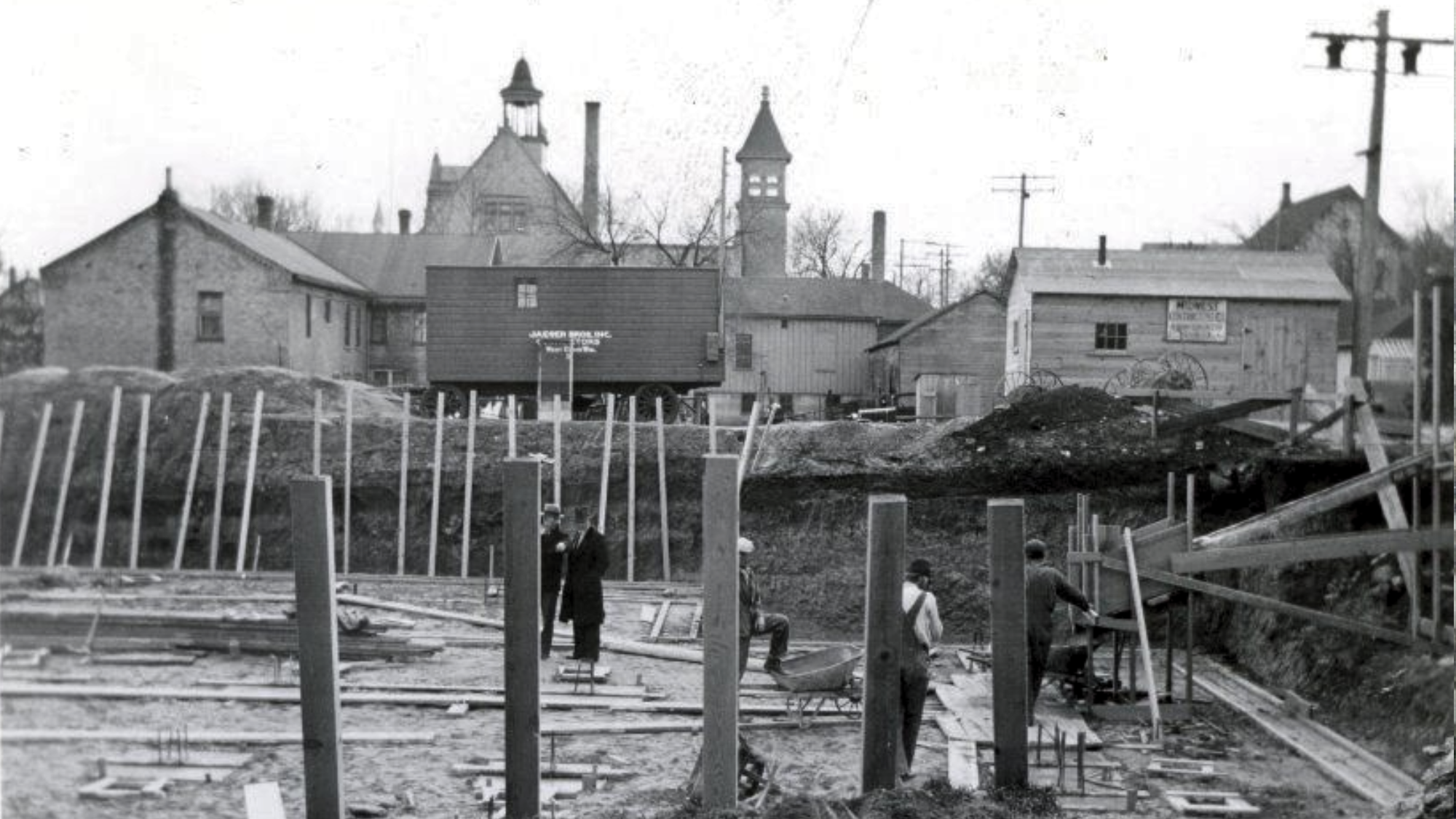 Construction progress of West Bend's historic post office building. Captured in 1936.